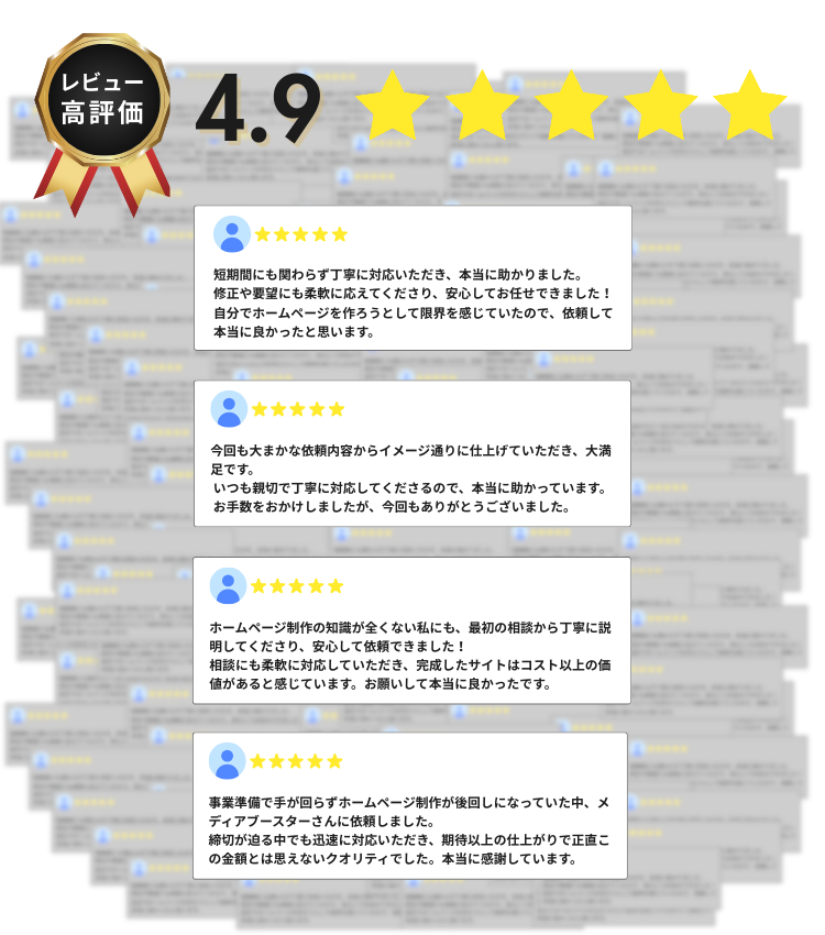 相場の3分の1ほどの価格で、必要十分な品質と信頼性を兼ね備えたサイトをご提供。